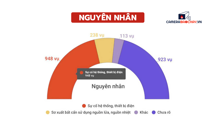 Trong số 1.299/2.222 vụ cháy đã được điều tra làm rõ nguyên nhân thì cháy do sự cố hệ thống, thiết bị điện chiếm tới 72,9% (948/1.299 vụ); do sơ xuất bất cẩn sử dụng nguồn lửa, nguồn nhiệt chiếm 18,3% (238/1.299 vụ). Các nguyên nhân khác mỗi nguyên nhân đều chiếm dưới 10%.